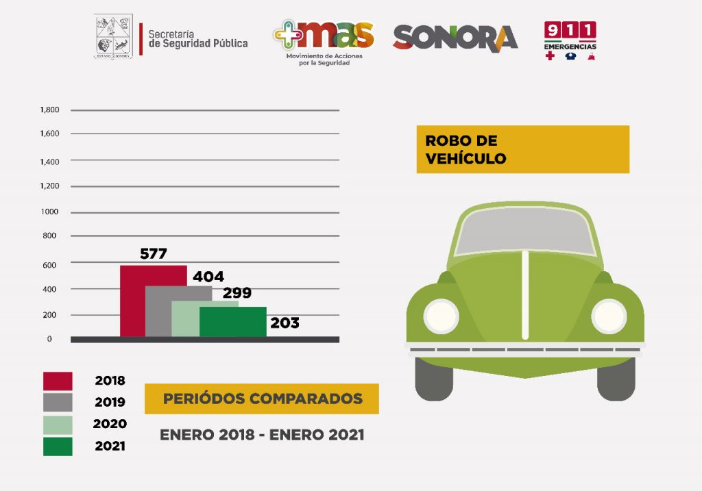 La PESP, durante el mes de enero, registró 22 vehículos recuperados con reporte de robo en municipios como Hermosillo, Cajeme, Bácum, Guaymas, Nogales, Gral. Plutarco Elías Calles, San Javier, Puerto Peñasco y Yécora.