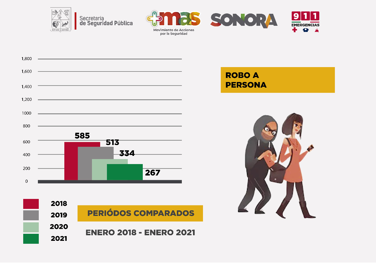De acuerdo a los datos registrados de la incidencia delictiva a través de la línea de emergencia 9-1-1 se logró durante el mes de enero bajar los delitos patrimoniales como robo a casa habitación, negocio, persona y vehículo en comparación con el mismo mes, además de ser menor que el promedio mensual de los años 2018, 2019 y 2020.