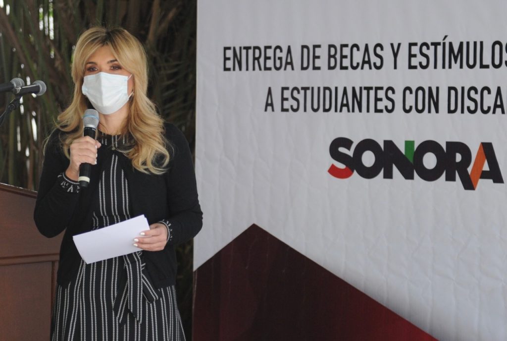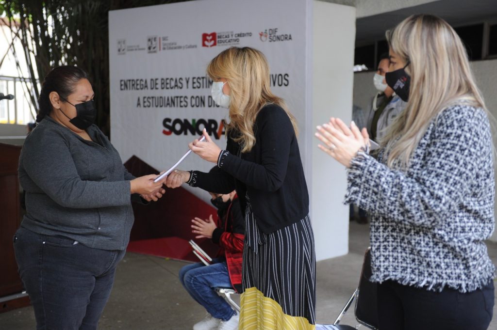Acompañada por Karina Zárate Félix, directora general de DIF Sonora; Yazmina Anaya Camargo, directora general del Instituto de Becas y Crédito Educativo y Carlos Francisco Valdez Bujanda, beneficiado del programa de becas y estímulos educativos, la mandataria estatal resaltó el esfuerzo de las niñas, niños y adolescentes con alguna discapacidad, así como de sus madres y padres que luchan diariamente por la inclusión y añadió que en ello radica la importancia de trabajar de forma transversal en el Gobierno del Estado para brindarles los apoyos y herramientas necesarios para mejorar su calidad de vida.