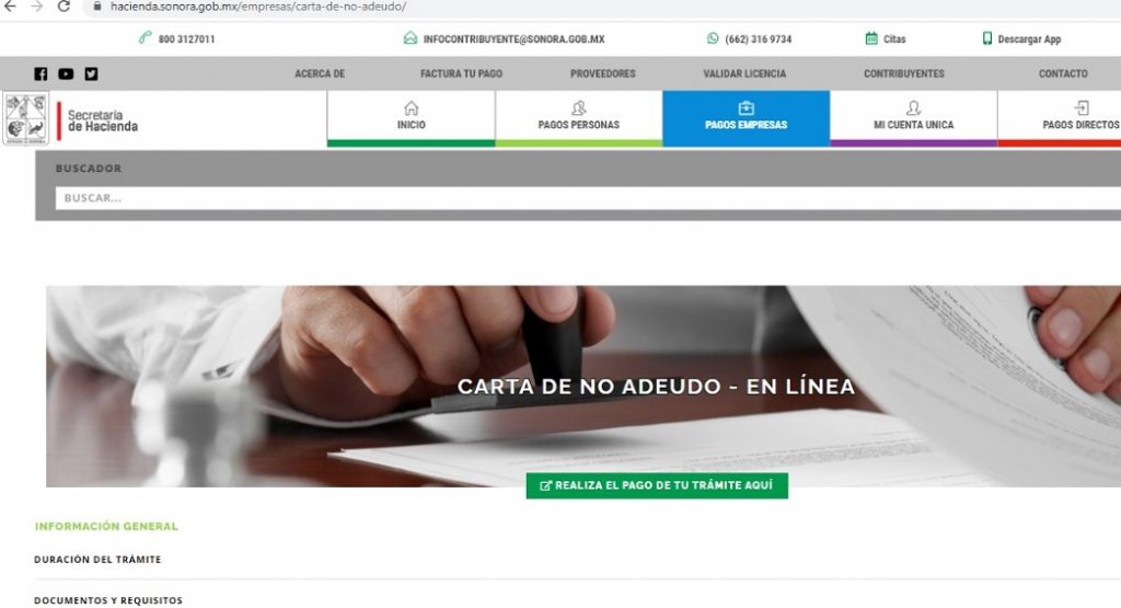 Hermosillo, Sonora; febrero 24 del 2021. Con el compromiso de eficientar los servicios de manera constante y promover la reingeniería integral de los trámites hacendarios, se unifica y digitaliza en 100 por ciento la expedición de la Carta de No Adeudo Estatal, al poder realizarse de manera directa en el portal www.hacienda.sonora.gob.mx, informó Alejandro García Rosas.
