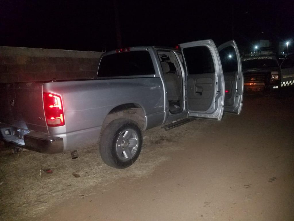 Al inspeccionar el pick up, Dodge, Ram sin placas de circulación se percataron que dentro había un arma de fuego tipo fusil con 2 cargadores y 48 cartuchos útiles. Los datos del vehículo arrojaron reporte de robo desde el 21 de agosto del año 2019 en el estado de Arizona, por lo que se tomaron las medidas de seguridad y se procedió a poner a disposición del Ministerio Público correspondiente.
