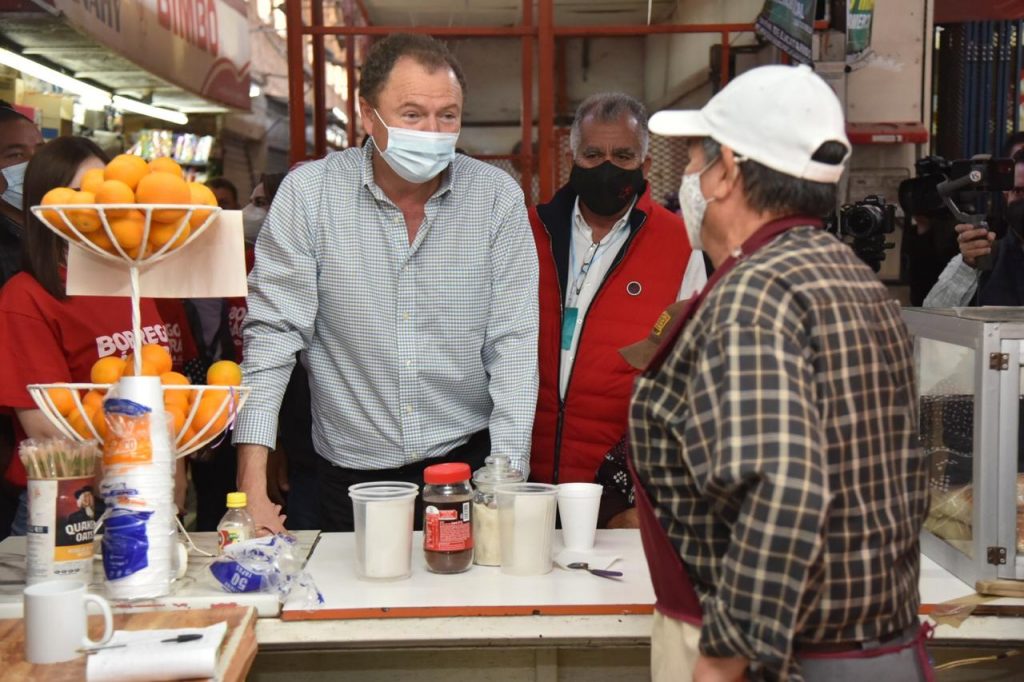 Gándara Camou culminó su visita al Mercado Municipal realizando recorridos entre los pasillos del inmueble, en donde se encontró con Francisco “El Paco” Ramos, músico local, quien le interpretó ‘Qué me importa’ de José Luis Perales, y posteriormente desayunó en el conocido puesto “El Rinconcito del Bocho”.