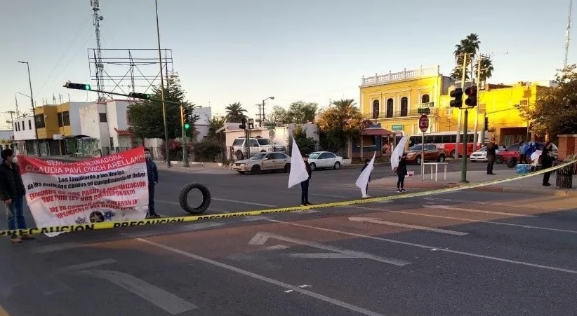 Hermosillo, Sonora.- Esposas y familiares de policías caídos bloquearon el bulevar Rosales y Pino Suárez a la altura de la avenida Hidalgo debido a la falta del pago de la partida para víctimas.
