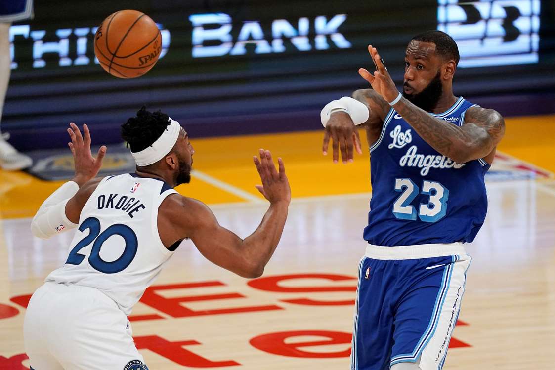 LeBron James anotó 25 puntos, capturó 12 rebotes y repartió 12 asistencias para el 99no triple-doble de su carrera y guió a los Lakers de Los Ángeles a una victoria el martes por 137-121 sobre los Timberwolves de Minnesota.
