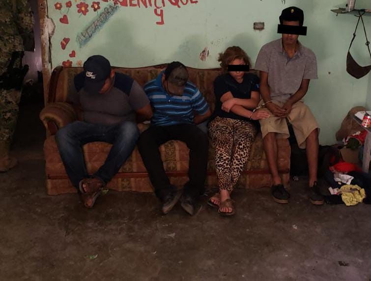 Fue a las 04:30 horas cuando la Policía Municipal en coordinación con la Secretaría de Marina, Sedena, FGR, AMIC, Guardia Nacional y la Policía Estatal, realizaban un cateo en la calle Aquiles Serdán y María Greever del sector antes mencionado, donde lograron la detención de Édgar Omar “N.”, de 24 años de edad, José de Jesús “N.”, de 39, Jesús Enrique “N.”, de 24 y Zuley Belem “N.”, de 21 años.