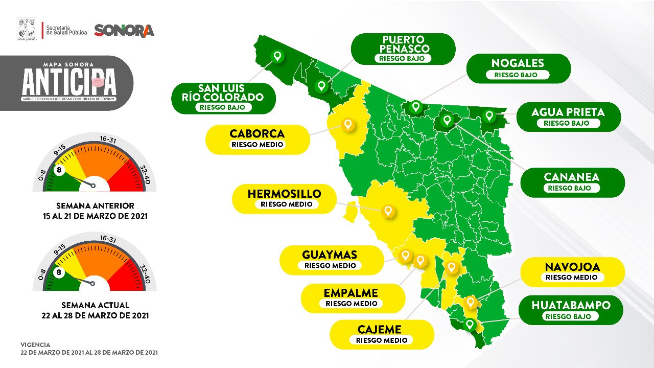 Para frenar la tendencia a la alza de COVID-19 en el estado, la Secretaría de Salud Sonora anunció que del 26 de marzo al 11 de abril de 2021 aplicará mayores medidas restrictivas para evitar la transmisión en Semana Santa y Semana de Pascua, con filtros sanitarios en carreteras, playas y paseos turísticos.