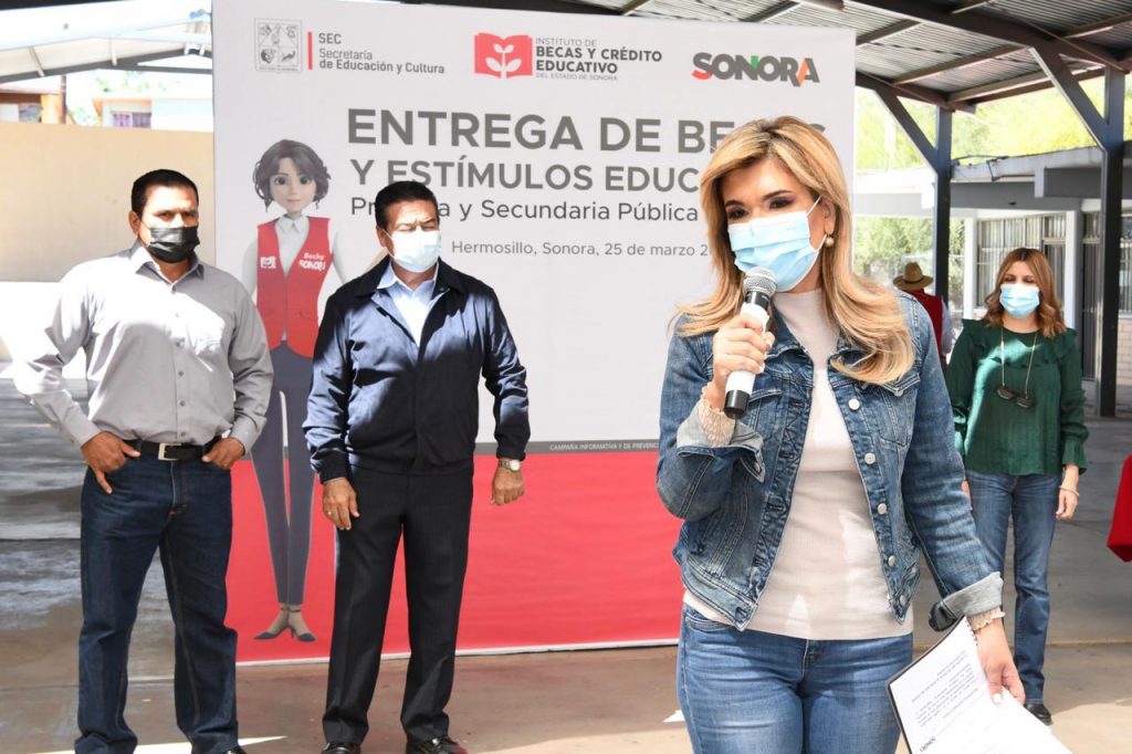 Hermosillo, Sonora. La educación es la mejor herencia que los padres les pueden dejar a sus hijos, por eso, el Gobierno del Estado sigue entregando becas a estudiantes de educación básica para que niñas, niños y jóvenes en condición vulnerable puedan continuar sus estudios, destacó la gobernadora Claudia Pavlovich Arellano.