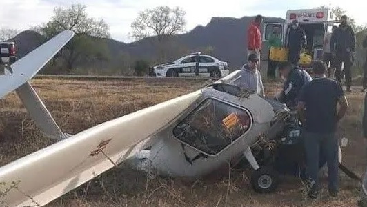 Jesús Zárate Gervacio, de 51 años, piloto y propietario de ultraligero, sufrió un accidente al pretender despegar de la pista en Álamos, resultó policontundido y con probable fractura en tobillo derecho.