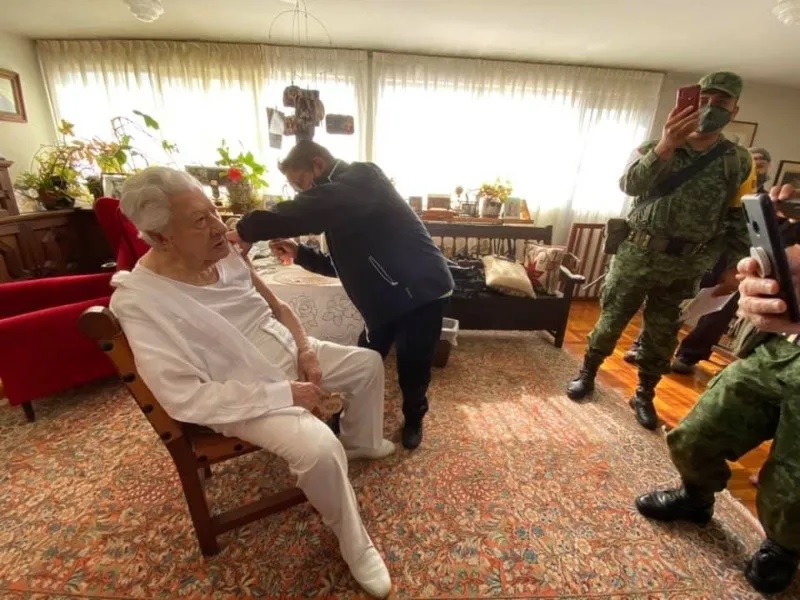 El actor de 96 años compartió en su cuenta oficial de Facebook una fotografía del momento en el que un siervo de la nación le inyectó el medicamento en su casa, donde también acudieron dos elementos del Ejército Mexicano.