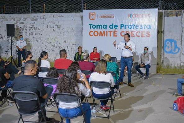 Hermosillo.- Vecinas y vecinos a las colonias Hacienda de la Flor y San Luis conformaron cinco comités CRECES para tener una mayor cercanía con los servicios que presta el Gobierno Municipal; fue el Presidente Municipal, Antonio Astiazarán quien les tomó protesta.