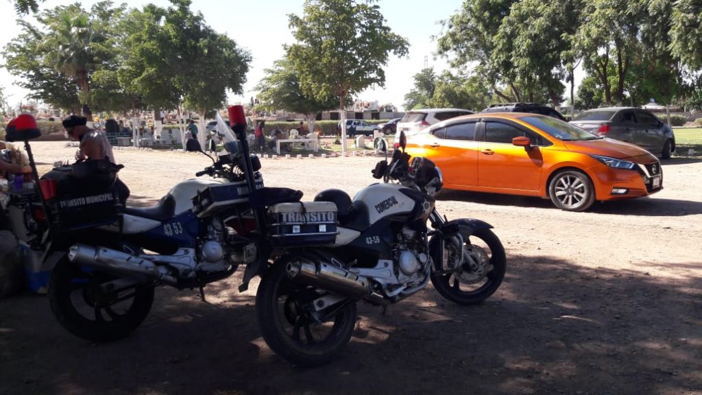 Asimismo, la Secretaría de Seguridad Pública Municipal con elementos de la policía preventiva y tránsito, realizaron recorridos de vigilancia en el interior y exterior de los panteones, así como en los caminos que previamente se prepararon para que fueran utilizados por los conductores.