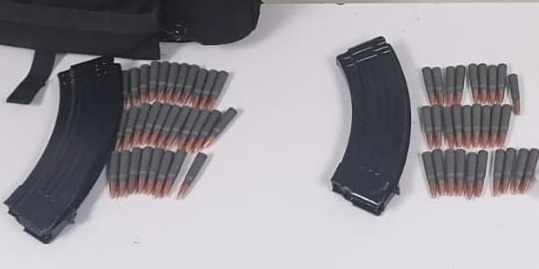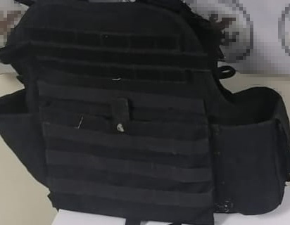 Durante la inspección al vehículo que conducía, se le aseguró un arma de fuego calibre .45mm, un chaleco táctico, cuatro cargadores y 97 cartuchos útiles.