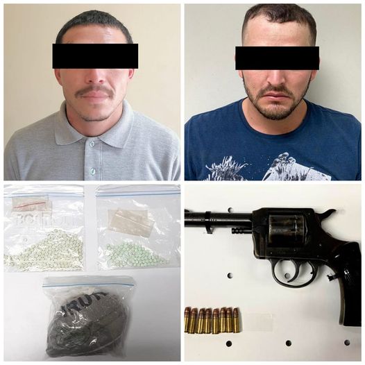 San Luis Río Colorado.- Elementos de la Policía Estatal de Seguridad Pública (PESP) lograron la detención de dos personas en acciones operativas en San Luis Río Colorado, hechos en los que se aseguraron sustancias prohibidas similares al narcótico, un arma de fuego y cartuchos útiles.