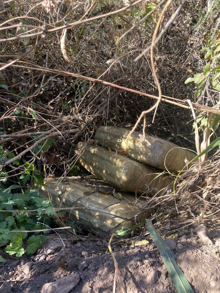 Al arribar a la zona y realizar una inspección entre la maleza, localizaron ocho paquetes confeccionados en cinta adhesiva, conteniendo aproximadamente 38 kilogramos de hierba verde al parecer narcótico.