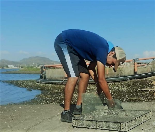 GUAYMAS.- Carlos Armando Almeida Román, estudiante del séptimo semestre de Ingeniería en Acuicultura del Tecnológico Nacional de México Campus Guaymas, tomó la decisión de iniciar su propia fuente de ingresos, aplicando sus conocimientos y ahora está a cargo de la siembra de 60 mil piezas de ostión japonés.