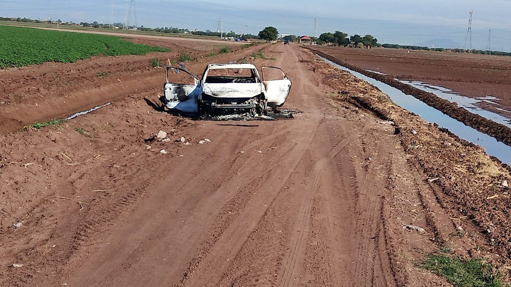 Alrededor de las 8:00 de la mañana de este viernes fueron localizadas en un predio agrícola del Valle del Yaqui dos personas sin vida dentro de vehículo incinerado.