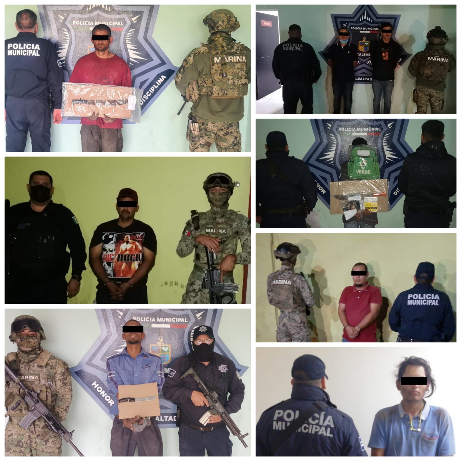 Las acciones de la Secretaría de Seguridad Pública Municipal dieron como resultado un total de 23 personas detenidas por elementos de la Policía en coordinación con la Secretaría de Marina, de los cuales 11 fueron por faltas administrativas y 12 detenidos por cometer diversos delitos se turnaron al Ministerio Público.