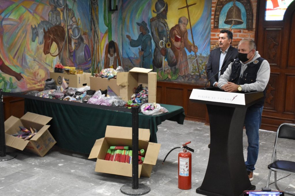 Explicó que, en coordinación con Seguridad Pública, Inspección y Vigilancia, se realizan revisiones en los puestos, además se han atendido 150 llamados por denuncia de venta clandestina de cohetes prohibidos, con 15 mil piezas decomisadas aproximadamente.