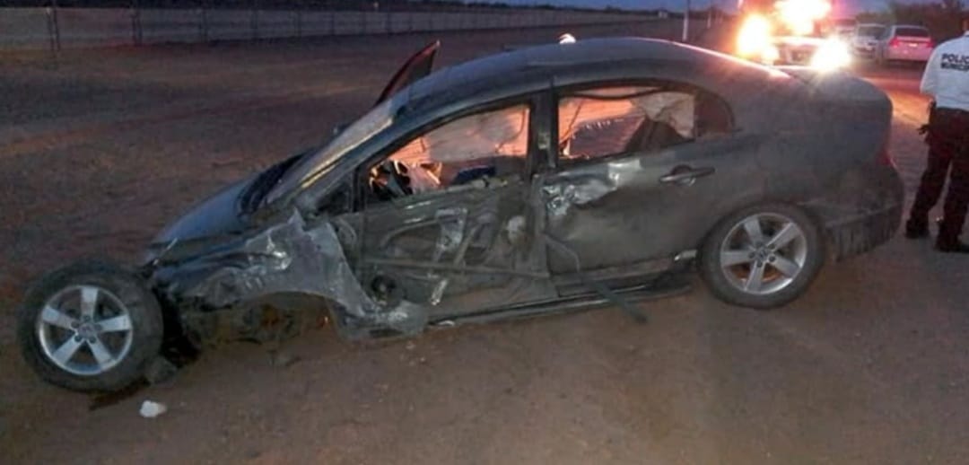 Al ir a exceso de velocidad un conductor perdió el control del vehículo impactando contra un poste de concreto de la CFE en la costa de Hermosillo, accidente que dejó dos personas sin vida.