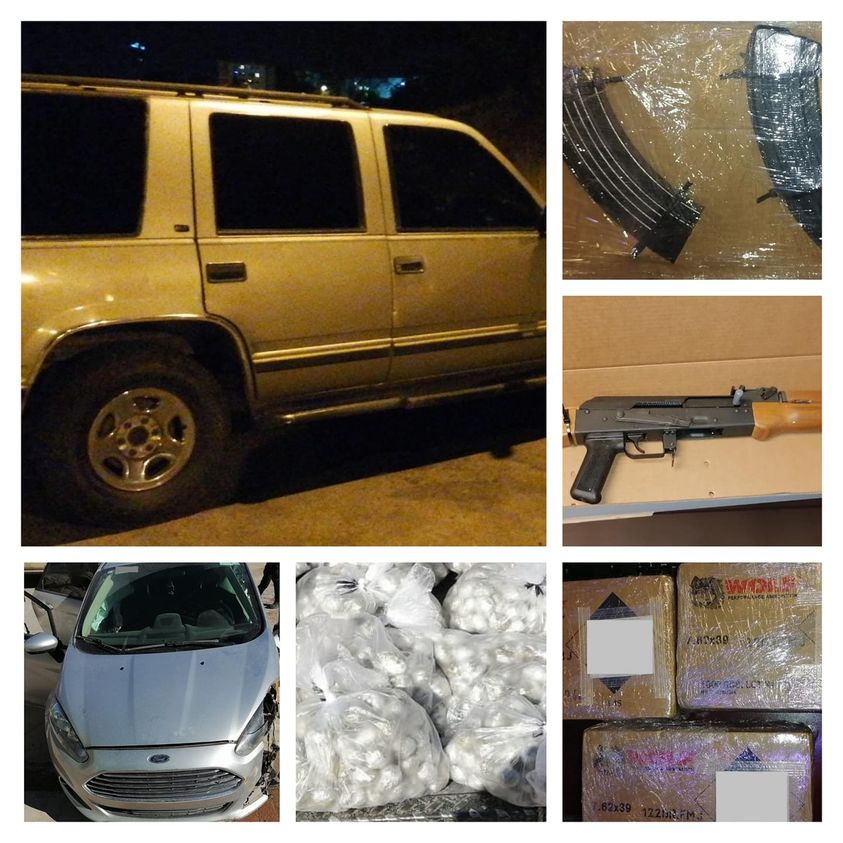 Dentro de la camioneta GMC, línea Yukón, color dorada, había dos armas AK-47 con cargador, además de cajas con aproximadamente tres mil 769 cartuchos útiles.