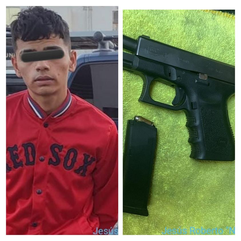 Hermosillo..- Personal operativo del Departamento de Vehículos Robados capturó en posesión de un arma de fuego a Jesús Roberto “N”, de 18 años de edad, quien al parecer es investigado por diversos delitos.