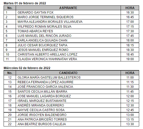 La presidenta de la citada Comisión señaló que las preguntas serán valoradas por los legisladores de dicha dictaminadora a fin de realizarlas a los postulantes al momento de las entrevistas los días 1, 2 y 8 y 9 del mes de febrero del presente año.