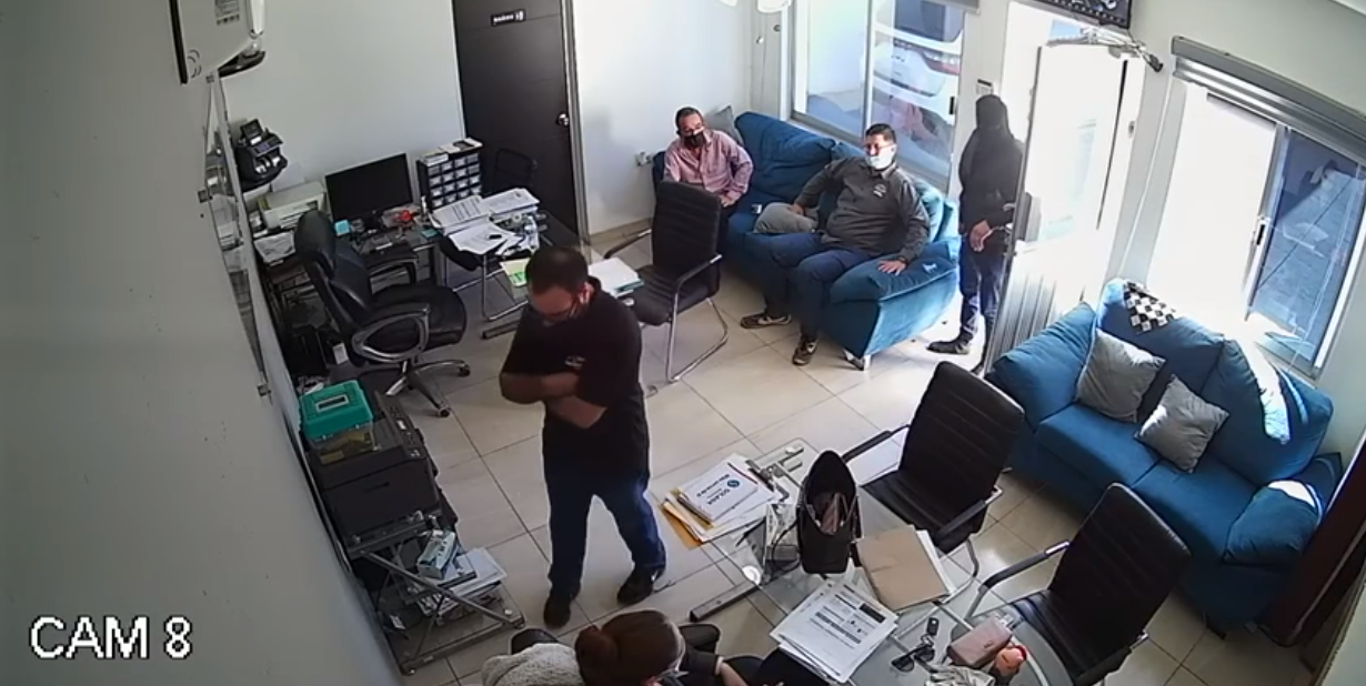 Minutos después, un masculino ingresó y con un arma de fuego en la mano exigió “vengo por el dinero de la chavala”, como se escucha en la grabación del video de vigilancia, amenazando a personas que estaban en en el  lugar, al obtener el efectivo se retiró.