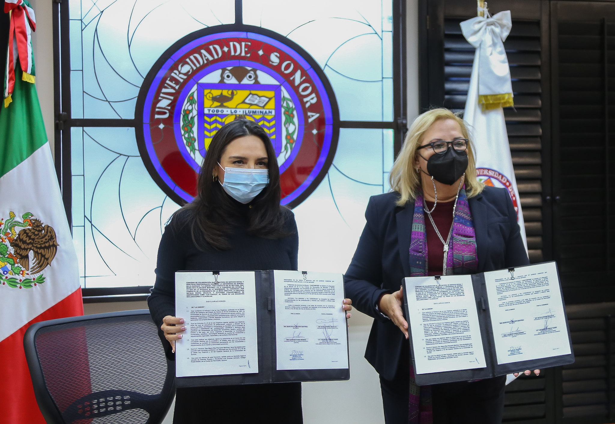 Como testigos en el evento estuvieron presentes la Vicerrectora de la Unidad Regional Centro, la directora de Apoyo a la Vinculación de la UNISON; y los directores generales de Jurídico y del Centro de Investigaciones Parlamentarías del Poder Legislativo.