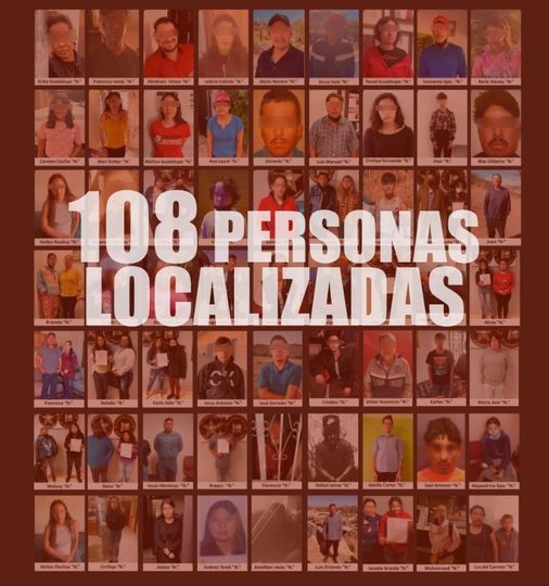 Del total de personas localizadas con vida 49 personas son menores de edad, 60 personas son adultas, entre 18 y 65 años, y sólo hay un adulto mayor de 68 años de edad.