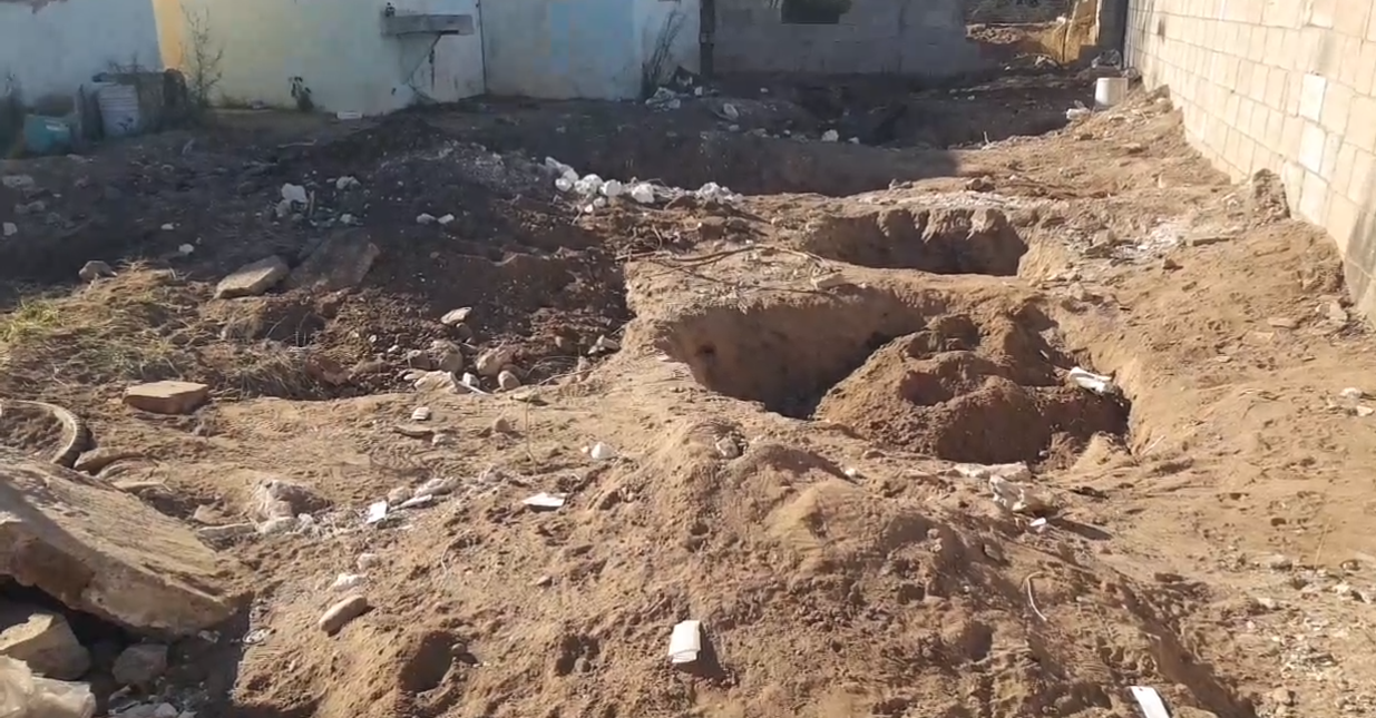 Como si fueran unos campos minados se ven los patios de tres viviendas ubicadas al poniente de Ciudad Obregón en la colonia Urbi Villa del Rey, luego de que los colectivos Guerreras Buscadoras de Cajeme y Rastreadoras de Obregón localizaron hasta el mediodía de este lunes 22 cuerpos sepultados clandestinamente.