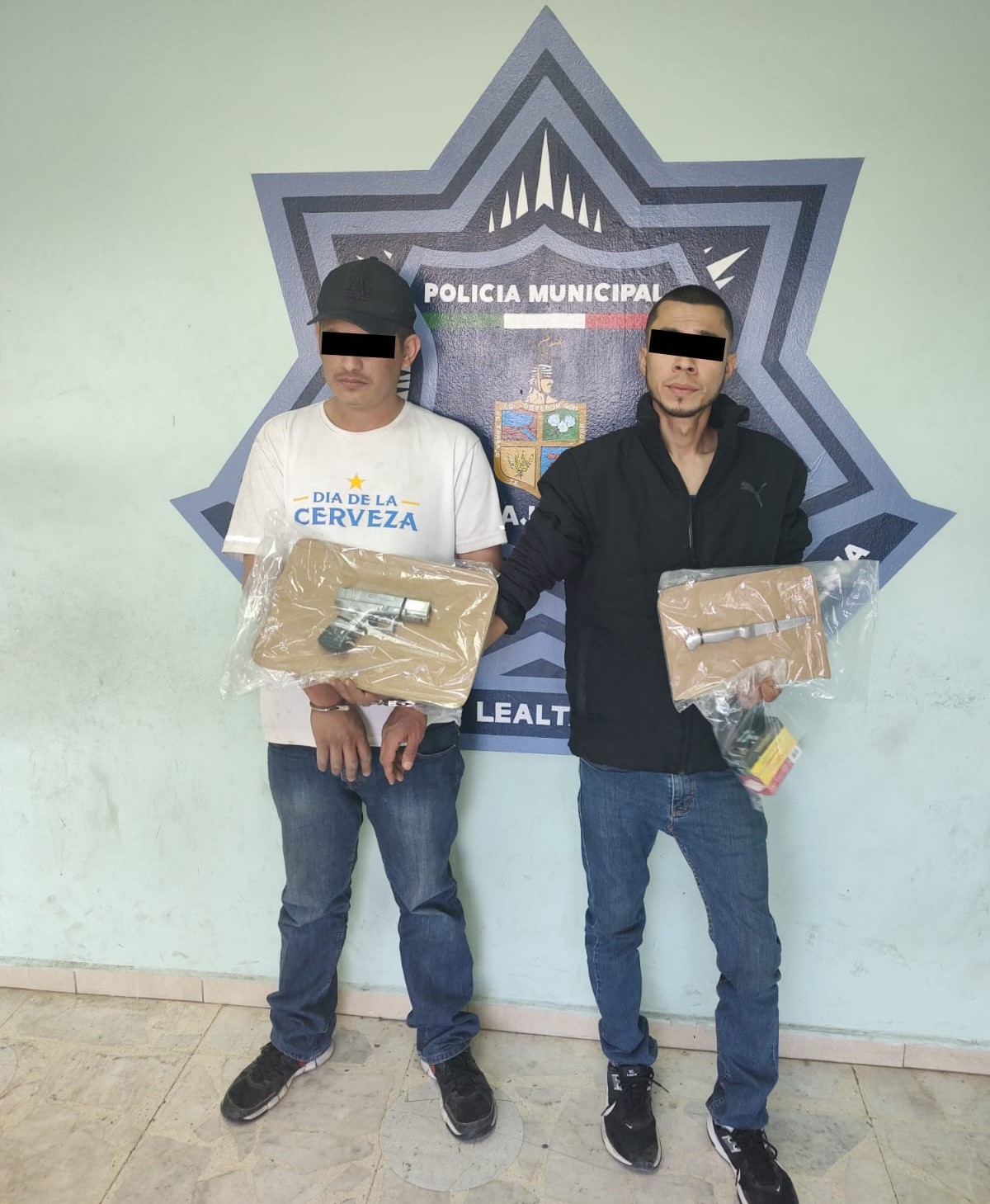 Al realizarles una inspección física se les encontró un arma de fuego corta y un cuchillo, así como varias cajetillas de cigarros y latas de cerveza, objetos que presuntamente minutos antes habían sustraído de manera ilegal de la tienda de conveniencia.