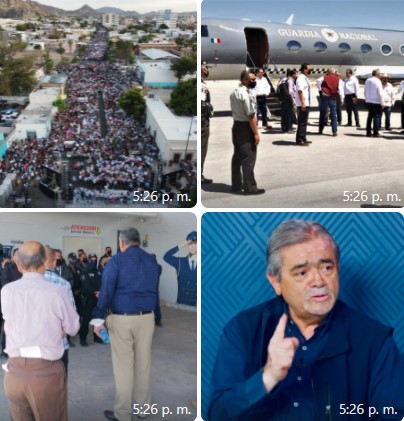Retomo que el ministro del interior, lejos de actuar moderado y conciliador, agitó el avispero, pues además de la arenga retadora, arribó en un avión de la Guardia nacional y hasta lo acompañó el comandante de esa fuerza, general Luis Rodríguez Bucio, quien paseó uniformado en los eventos, junto a Mario Delgado, coordinador legislativo, y otros dirigentes.