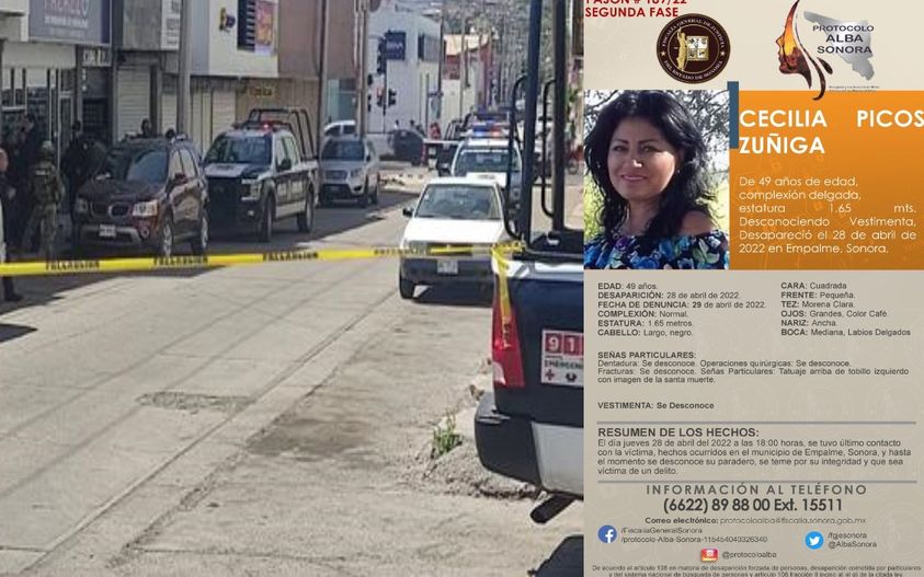 El pasado 28 de abril por la tarde se denunció la probable privación ilegal de la libertad de Cecilia Picos Zúñiga, de 49 años, luego de que familiares no la localizaran en su vivienda, ubicada en la colonia Ronaldo Camacho, en Empalme, elementos AMIC iniciaron las investigaciones de manera inmediata y se han establecido varías líneas de investigación.