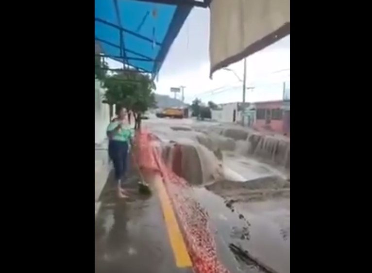En redes sociales circuló un video de como corre el agua en una de las calles donde se realizaba una reparación.