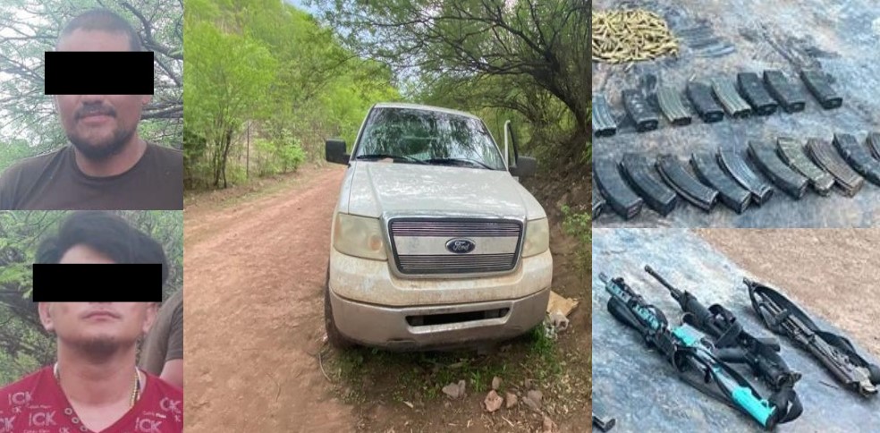 En una oportuna intervención, la tarde del martes se detuvo a dos hombres, identificados como Carlos “N” y Rubén “N”, de 27 y 38 años de edad, respectivamente, después de ser interceptados bajando de un vehículo Ford, color blanco, con placas de afiliación, en un camino de terracería del poblado Nuri.
