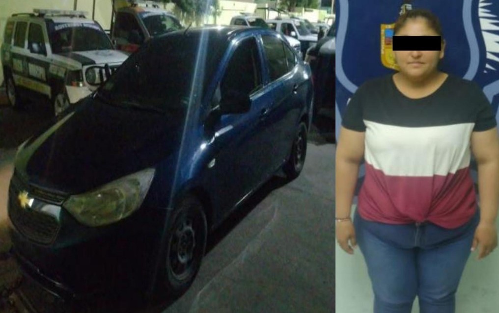 La fémina quien se identificó como Mercedes Guadalupe “N.”, de 32 años, fue capturada poco antes de las 21:10 horas del miércoles, por la Carretera Internacional Número 15 y calle 300, sitio en el cual conducía un vehículo tipo sedán de la marca Chevrolet línea Aveo color azul.