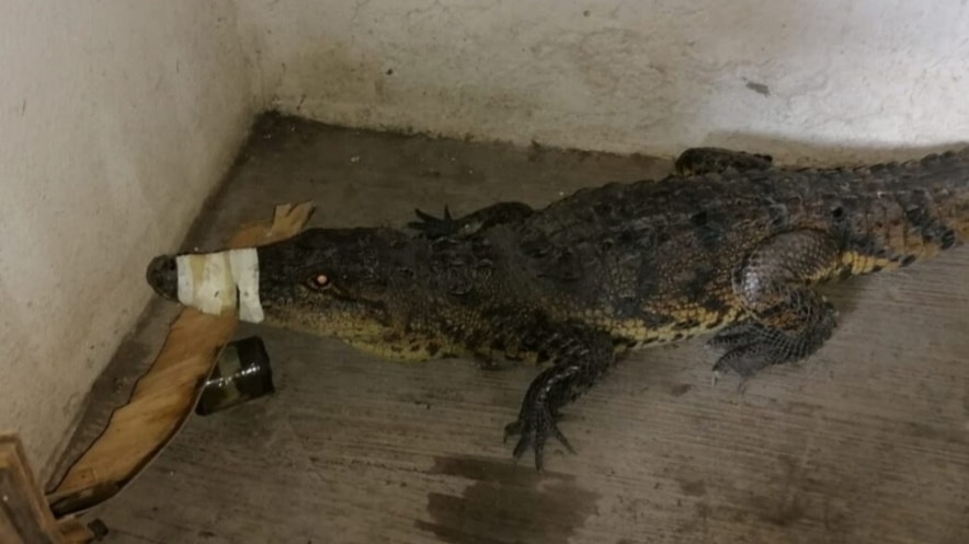 Los vecinos, al ver al animal, reportaron su presencia a las autoridades, quienes atendieron el llamado, y con técnicas y equipo especial, sometieron al cocodrilo.