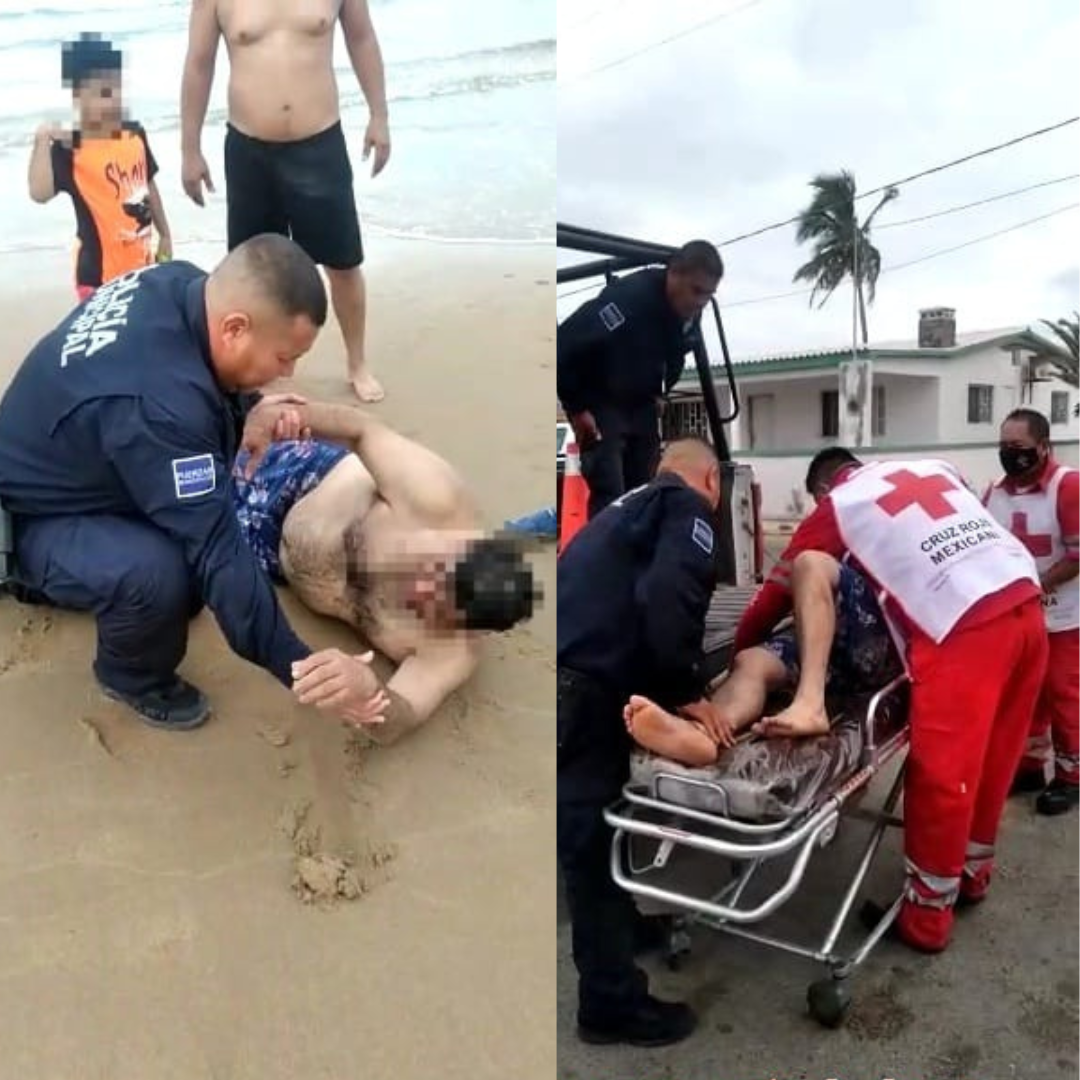 Ahí, los elementos policiales vieron a un hombre tirado en la orilla de la playa, junto a él un familiar que dijo que lo había sacado del mar ya que estuvo gritando por ayuda.