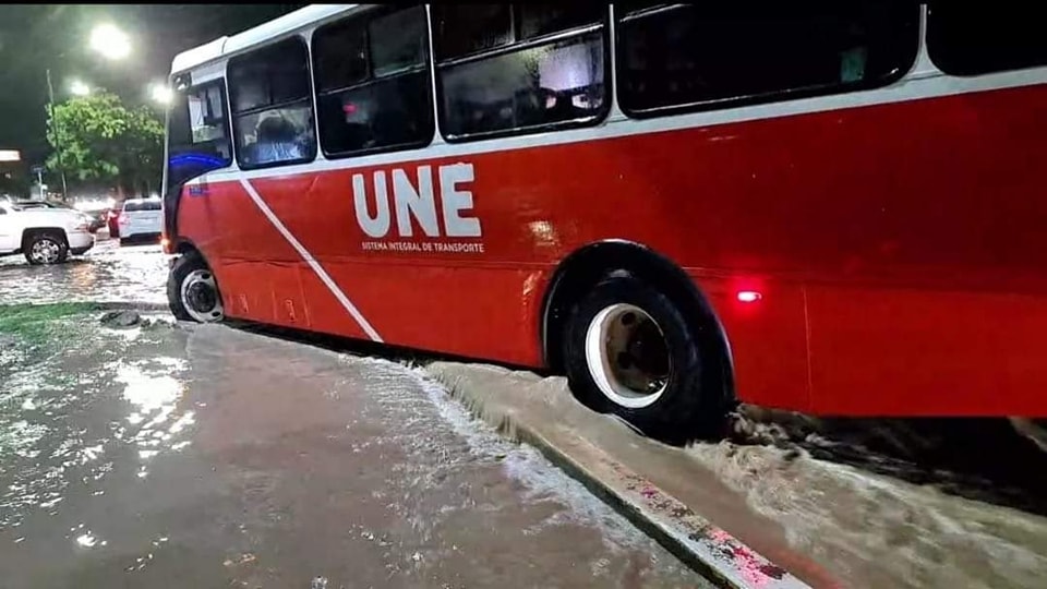 Un chófer de transporte urbano, intentó sacarle la vuela a vehículos varados sobre el Boulevard, optando por subir a los camellones y quedando atascado, causándole daños a la unidad, poniendo en riesgo al pasaje y provocando un caos vial.