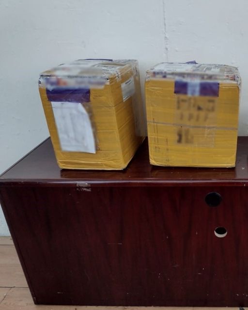 En el área de paquetería internacional, el ejemplar canino olfateó diversos, envíos interesándose por dos cajas de cartón y mostrando una alerta seguida de una indicación positiva a uno de los aromas para el cual fue entrenado.