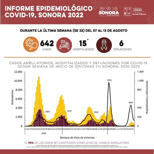 Hermosillo.- La Secretaría de Salud confirmó 642 casos y seis defunciones por Covid-19.