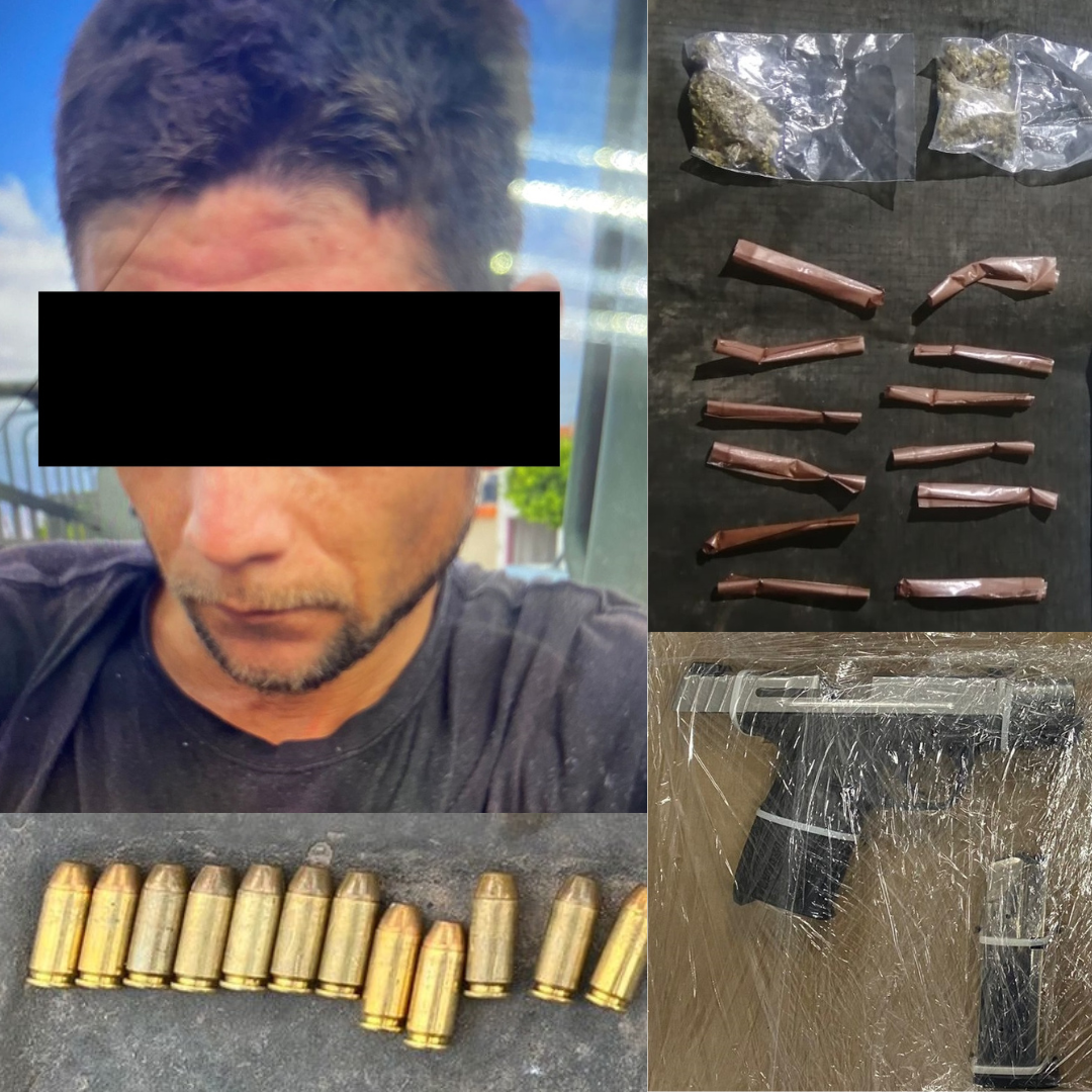 Fue sobre la calle Paseo las Palmas donde se llevó a cabo la detención de Alonso “N”, de 34 años de edad, en posesión de un arma de fuego, un cargador y 12 cartuchos para arma calibre .40mm.