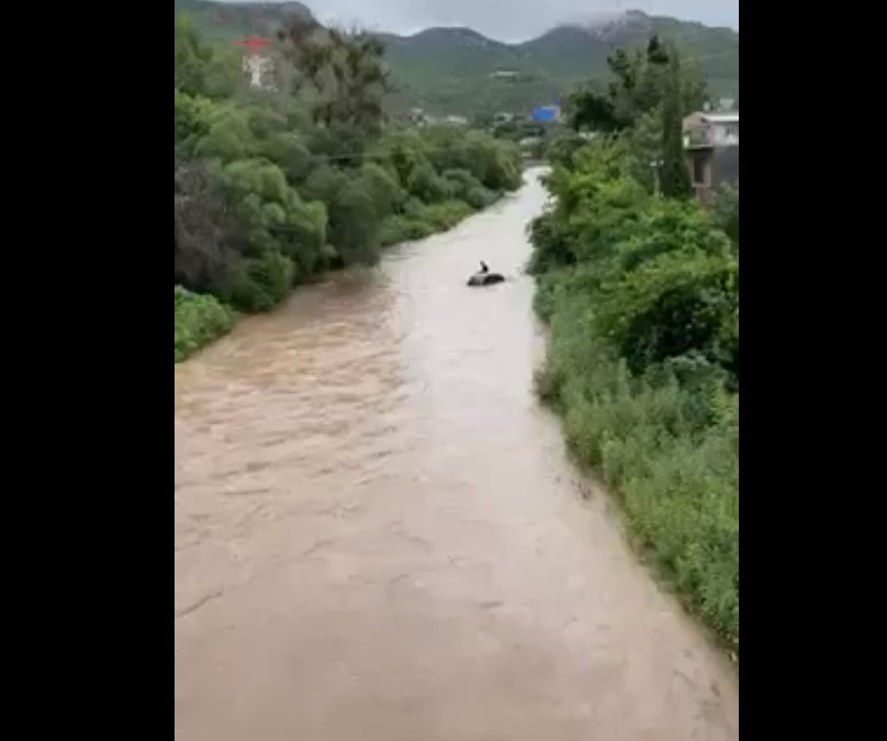 Un joven fue arrastrado por la corriente aproximadamente 200 metros del rio Nacozari, el cual intentó cruzar en su carro después de una trasnochada, por fortuna tuvo fuerzas para brincar y alcanzar la orilla, donde vecinos lo ayudaron.
