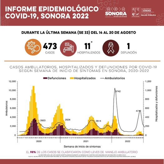 Hermosillo.- La Secretaría de Salud (SSA) confirmó 473 nuevos casos y una defunción por Covid 19.