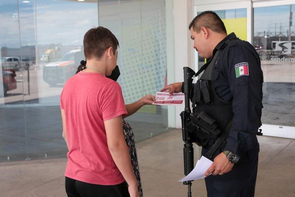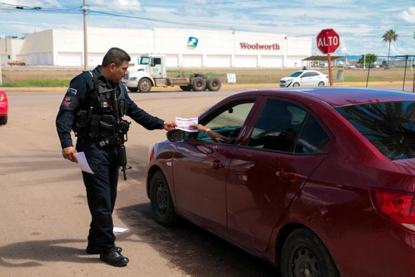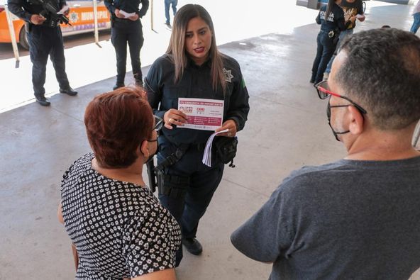 Como parte del operativo los oficiales entregaron volantes y explicaron a los habitantes sobre la utilización del número de emergencias 911, 089 para la denuncia anónima y el 6441681330 para atender de forma directa llamados a personas en situación de vulnerabilidad.