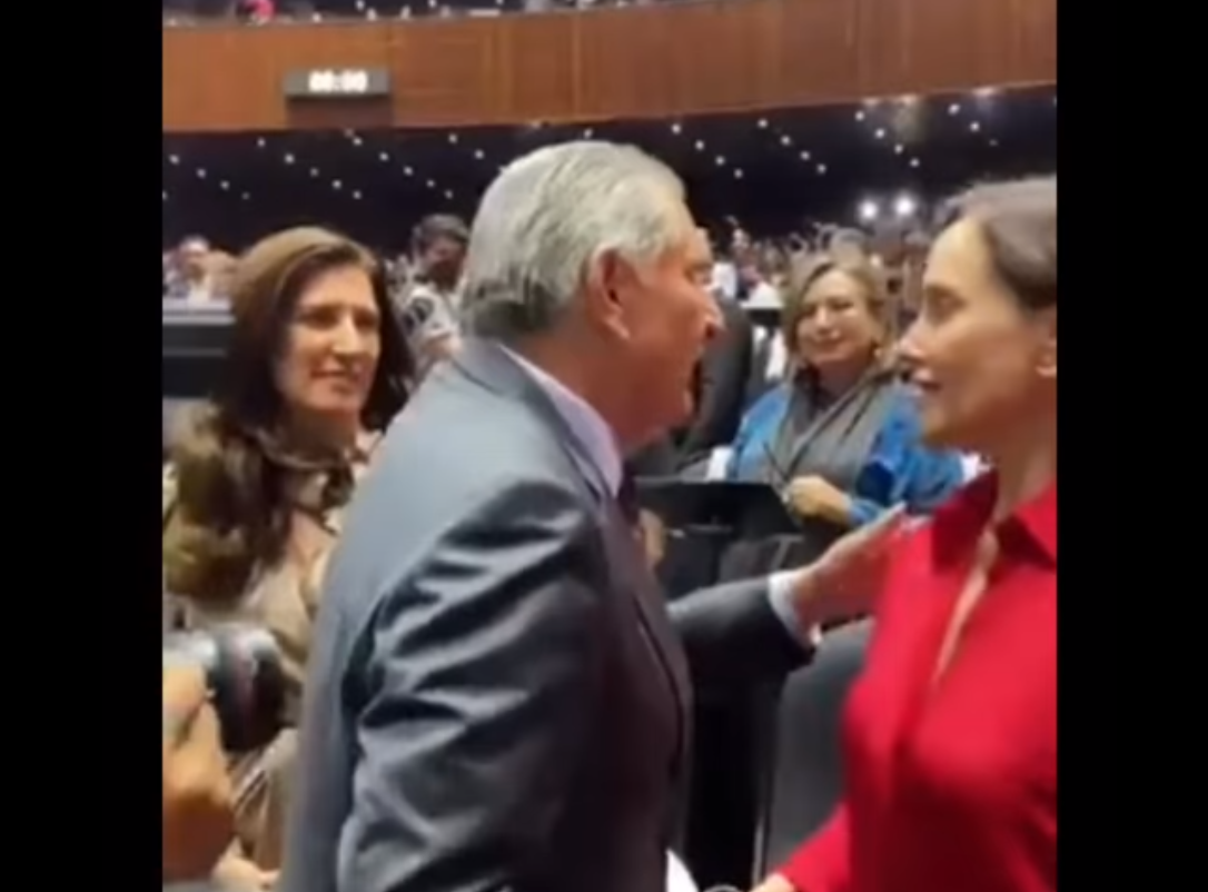 En las imágenes compartidas por la senadora de Acción Nacional en sus redes sociales, se observa cómo el secretario de Gobernación la saluda y ella le dice: “Puras mentiras en el informe”.