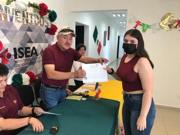 Luego de reconocer la voluntad y entusiasmo de los adultos por salir adelante ante las adversidades, el director de programas sociales Baldomero Soto, la coordinadora de Centros de Participación Comunitaria Marisela Pineda, la promotora María Elenes y la técnico docente del ISEA, Virginia Contreras, entregaron certificados de primaria.