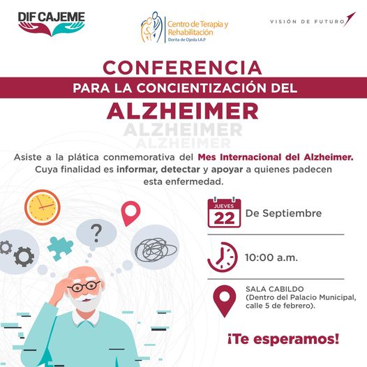 🗣 Asiste a la plática conmemorativa del Mes Internacional del Alzheimer, cuya finalidad es informar, detectar y apoyar a quienes padecen esta enfermedad, por una sociedad más empática e informada.