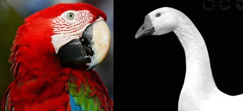 El garrir (gritar) de la guacamaya le ganó al graznido del ganso.