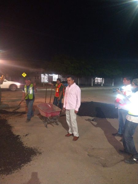 El alcalde Javier Lamarque continuó este miércoles con los recorridos nocturnos de supervisión de obras de bacheo por diferentes calles de Ciudad Obregón.